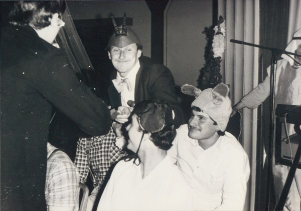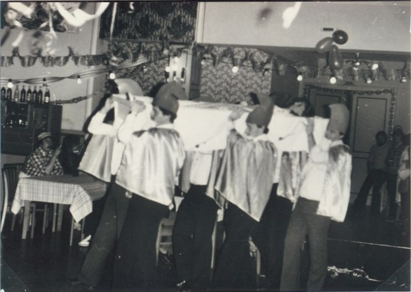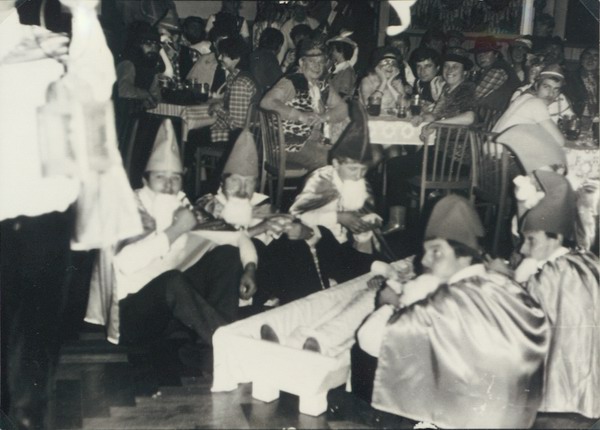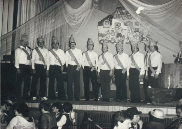 Der erste Elferrat, noch mit selbstgenähten Narrenkappen und Schärpen.